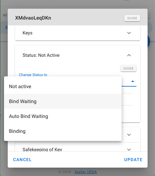 Click Change Status to select menu and select Bind waiting