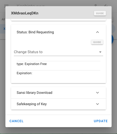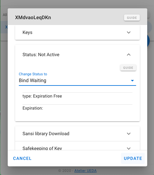 Click blue UPDATE button at the bottom right to reflect the changes to the Koshinto service.