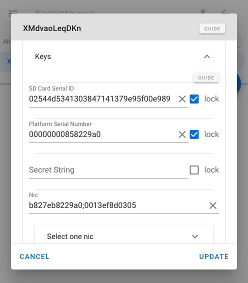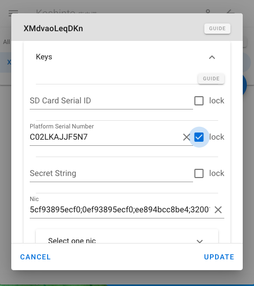 Check the lock check box on the right end of the SD Card Serial ID and Platform Serial Number.