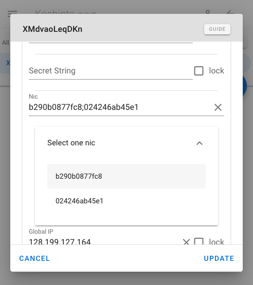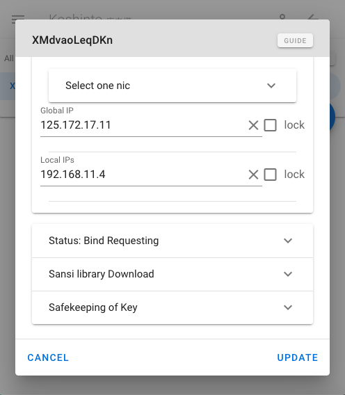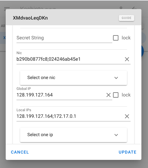 Local IPs is a semicolon-separated string of Local IP adresses collected by sansi. As with the NIC, you can select one of them and lock your app as a key.